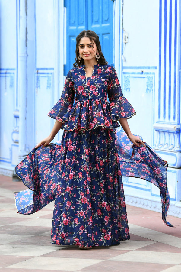 Indigo Floral print Lehenga set BY SUTI KAPDA -3PC SET