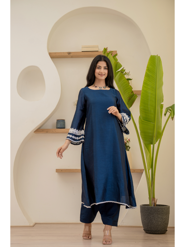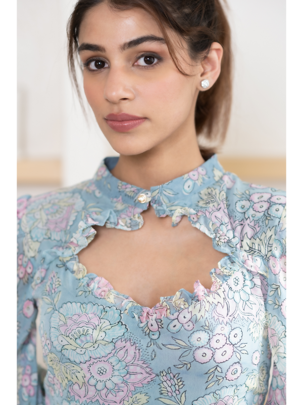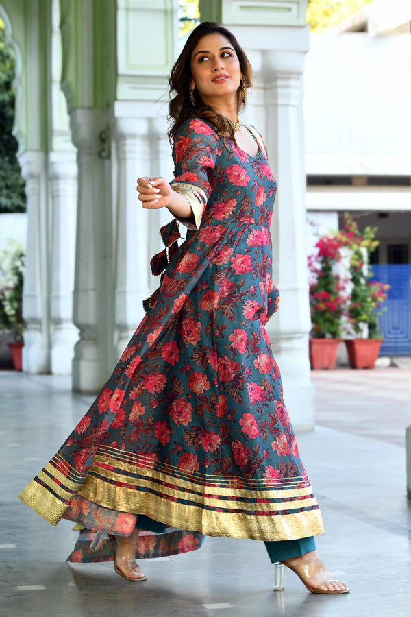 Blue Floral Anarkali kurta set BY SUTI KAPDA -3PC SET