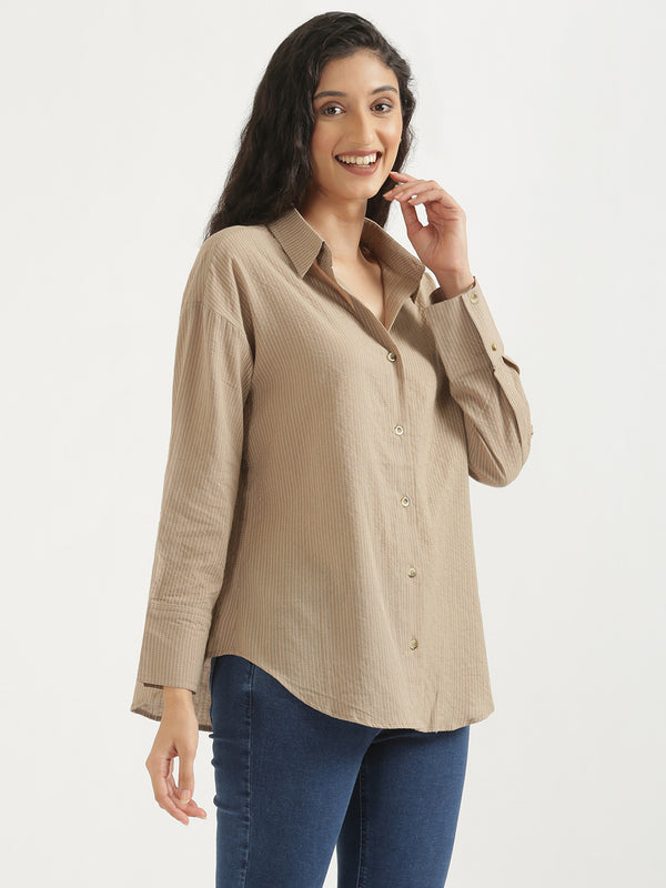 Oversized Cotton Shirts - Nude Brown