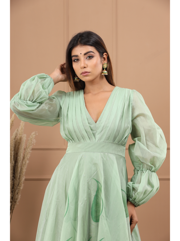 Olive Chanderi Hand Paint Dress