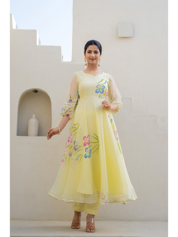 Yellow Anarkali Gown With Dupatta - (2Pcs) By SUTI KAPDA