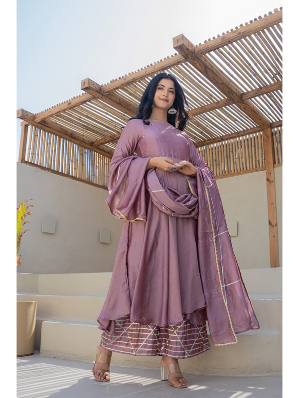 Mauve Anarkali Kurta With Dupatta For Women- (3Pc Set) By SUTI KAPDA