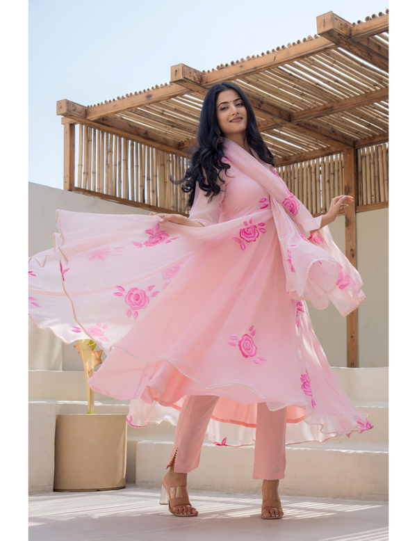Pink Floral Anarkali suit set BY SUTI KAPDA -3PC SET