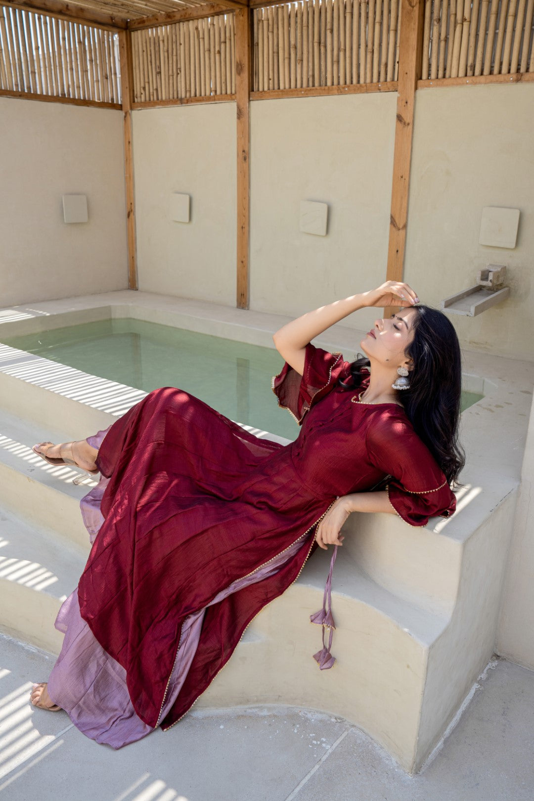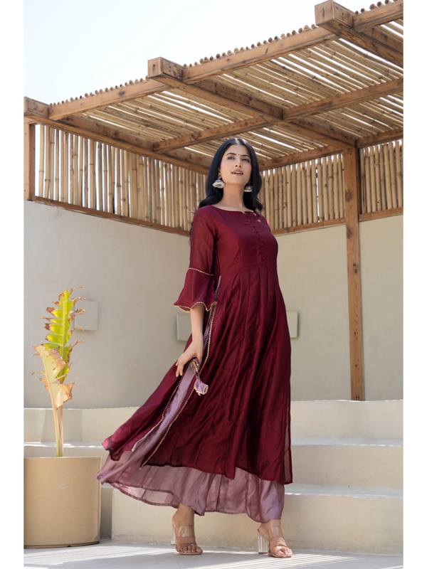 Burgandy Chanderi Hand Paint Dress