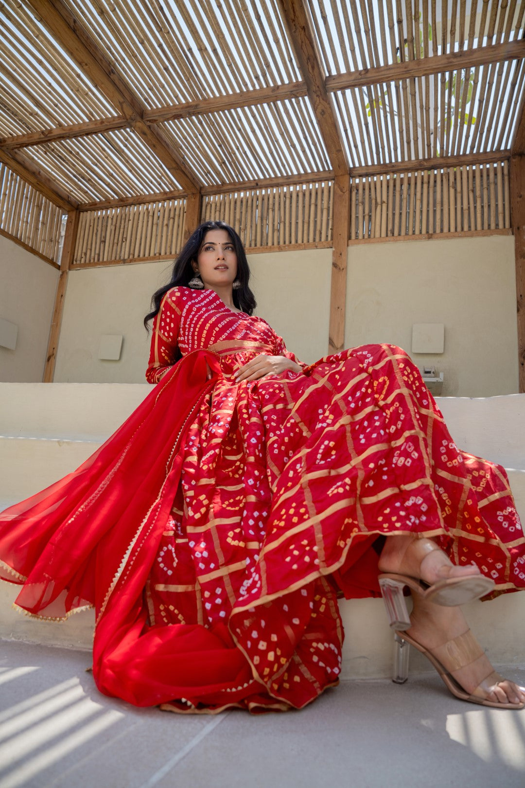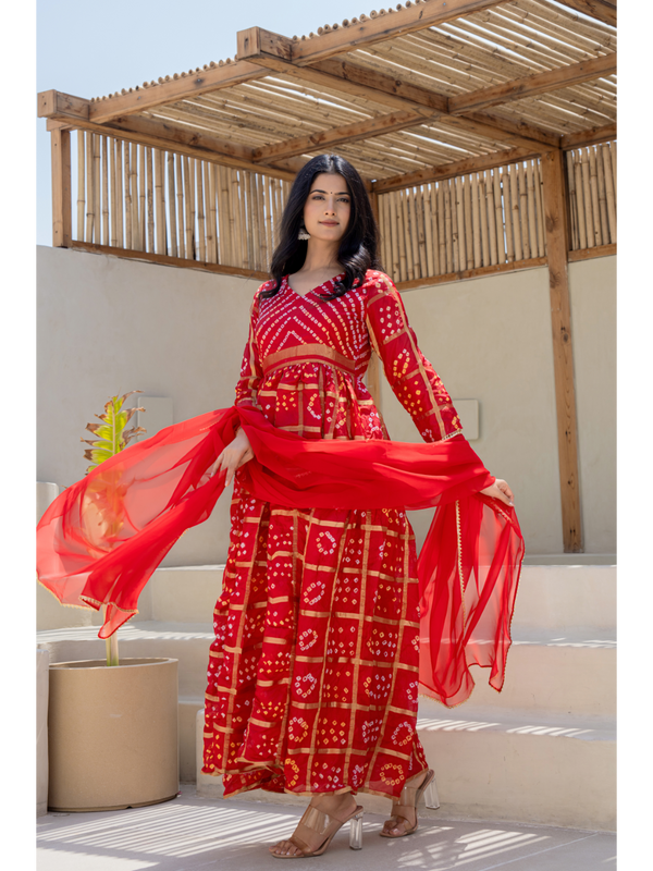 Red Bandhani Gown