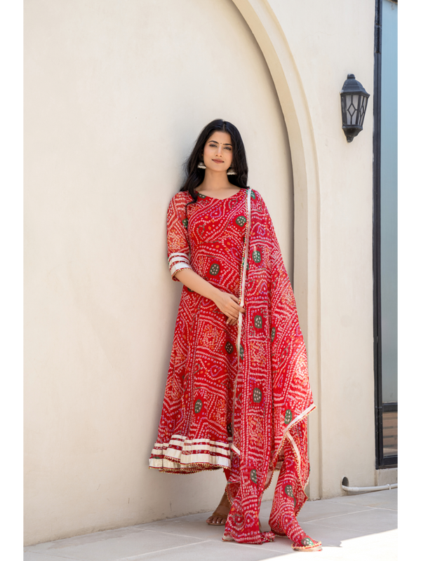 Red Bandhani Suit Set