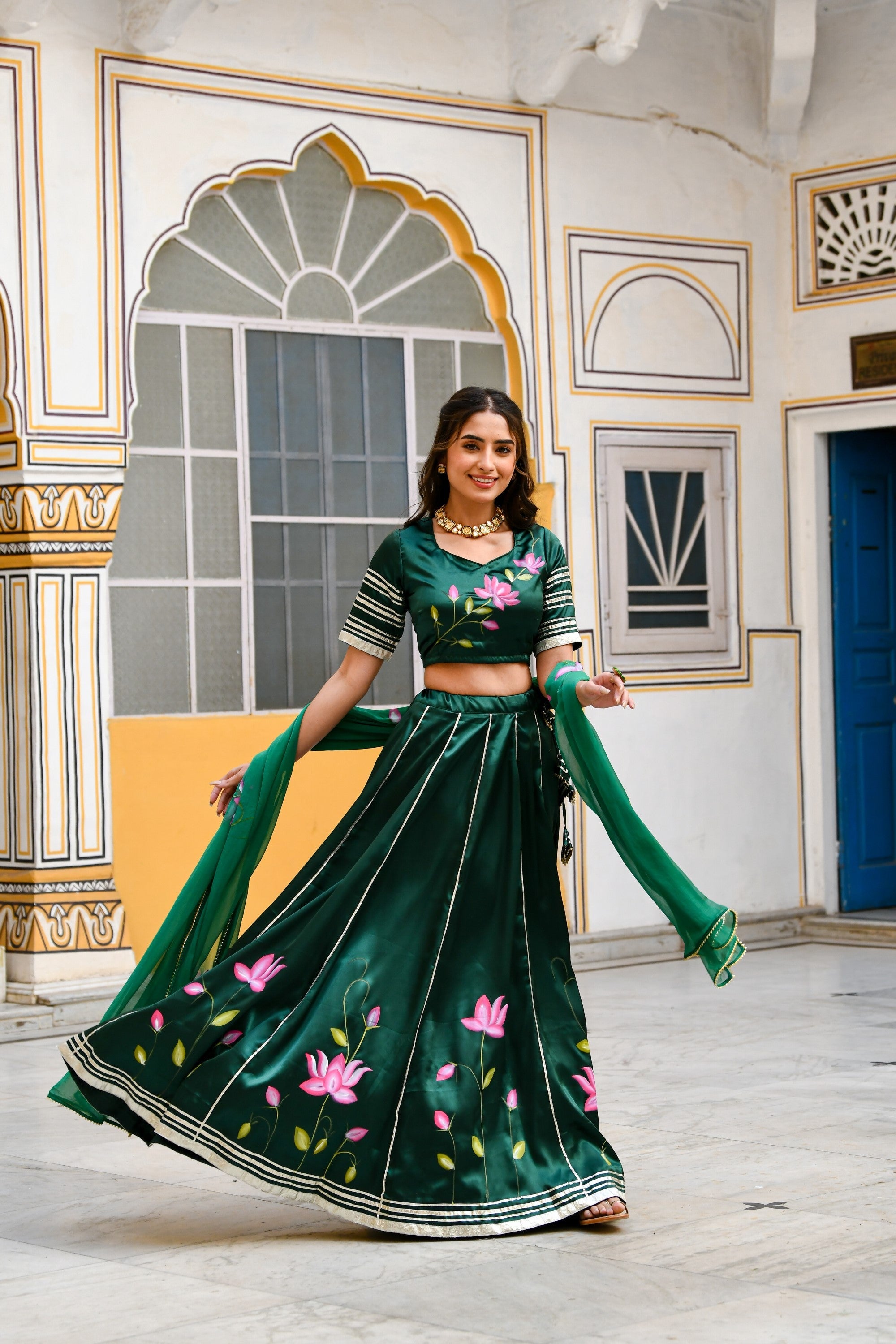 Crafted from 100% handpaint and gota work , our lehengas blend of comfort and style