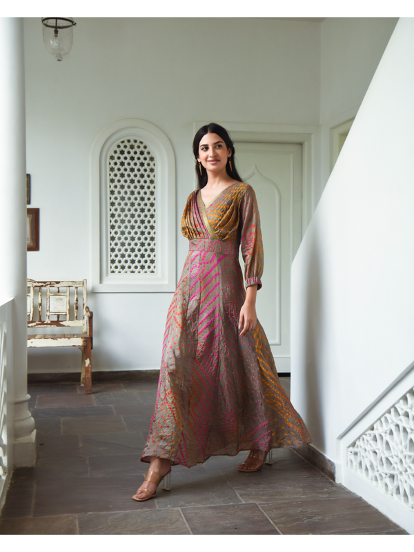 Rani Bandhej Gown Set