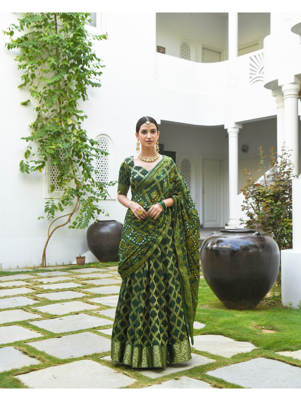 Bottle Green Lehenga Choli For Women- (3Pc Set) By SUTI KAPDA