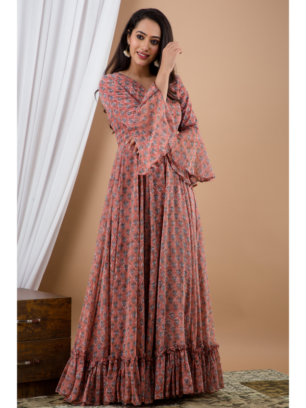 Pink Anarkali Gown With Dupatta - (2Pcs) By SUTI KAPDA