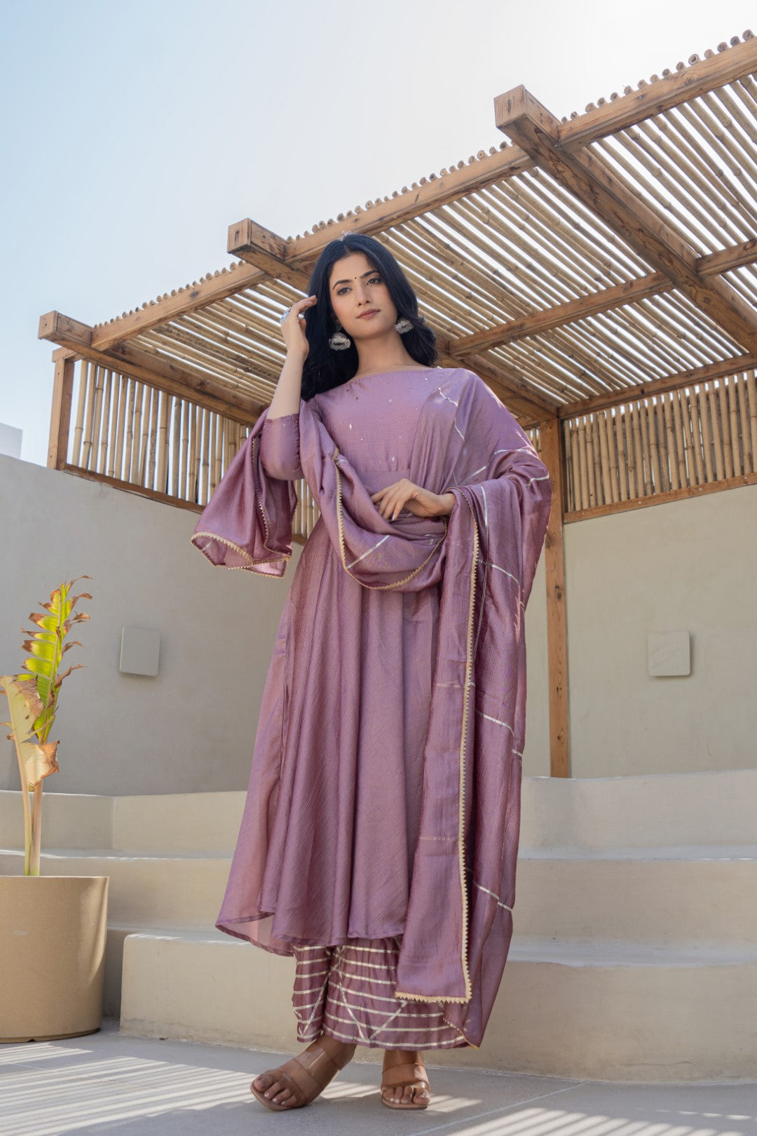 Mauve Chiffon Hand Block Print DressRegular price Rs. 7,950.00
